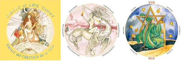 Circle of Life Tarot is one of the rare decks in the world designed in a circular form, based on the cycle of samsara and one’s life. The 78 cards are a combination of the conventional Tarot symbols system with unique and imaginative graphics of life’s journey. The characters in the deck are creatures that characterize the four basic elements and have a mythical look, emphasizing the feature of the circles.