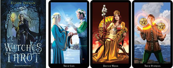 Witches Tarot là một bộ bài dựa trên bối cảnh của một thời đại đã đi vào lịch sử Châu Âu – thời mà phù thủy và pháp sư tồn tại. Tác giả Ellen Dugan là một độc giả giàu kinh nghiệm và xuất thân từ một gia đình phù thủy trong khi họa sĩ Mark Evans là một nghệ sĩ kỹ thuật số nổi tiếng – sự kết hợp đã tạo nên một trong những bộ bài đẹp nhất thế giới.